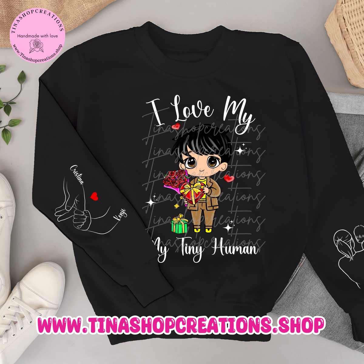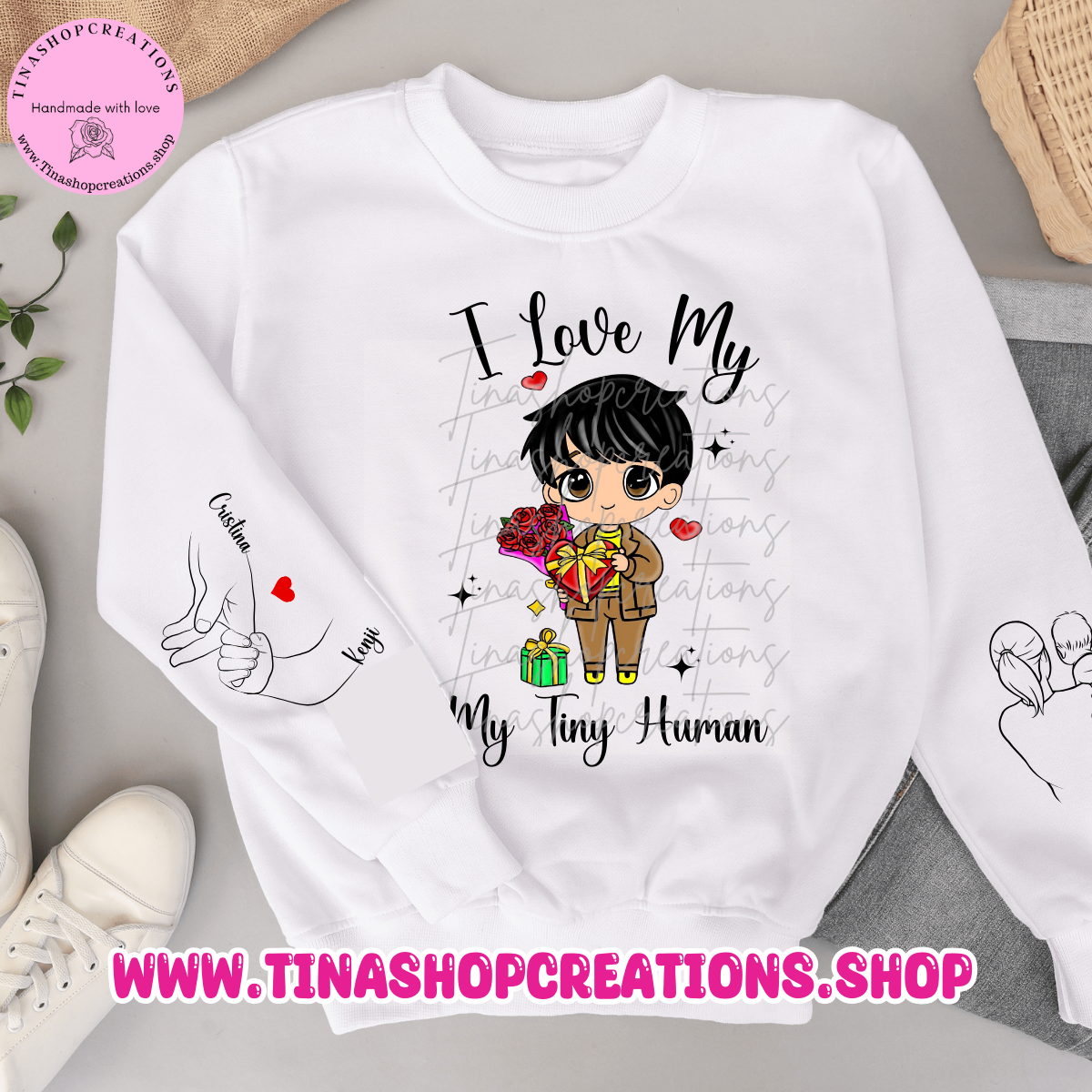 I Love My Tiny Human es una manera perfecta de mostrar amor por su pequeño con esta ropa personalizada con los nombres del niño y de los padres. Este diseño bien pensado es ideal para padres, abuelos o cualquier persona que adore a un pequeño en su vida. La prenda presenta encantadores diseños en cada manga, lo que la hace versátil para cualquier atuendo. Disponible como camiseta, sudadera o sudadera con capucha, este artículo es un regalo significativo y sincero para cualquier ocasión. Comparte tu amor y orgullo por tu pequeño ser humano con esta pieza especial y única.