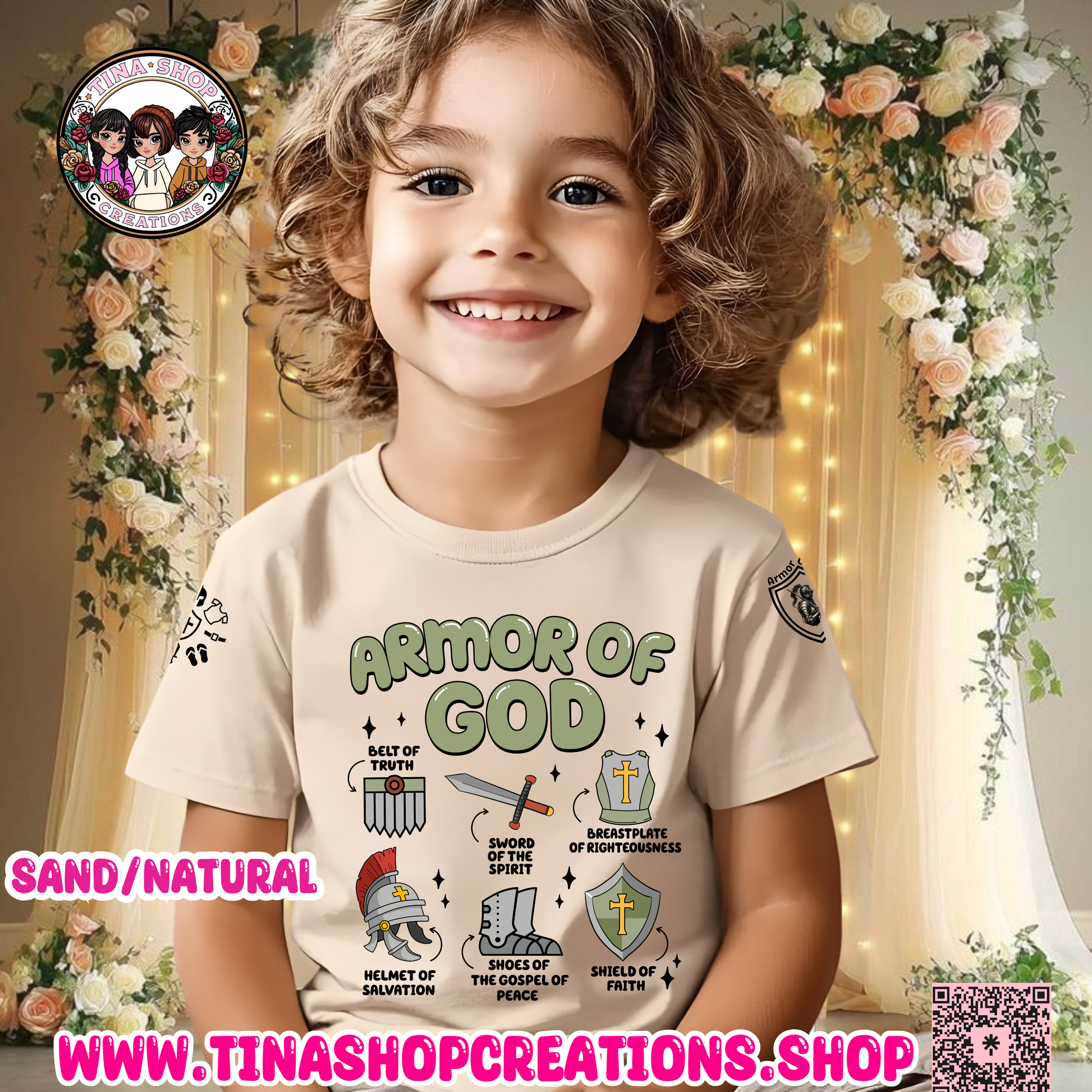 Equip your little warrior with faith, courage, and strength with our Armor of God kids apparel!