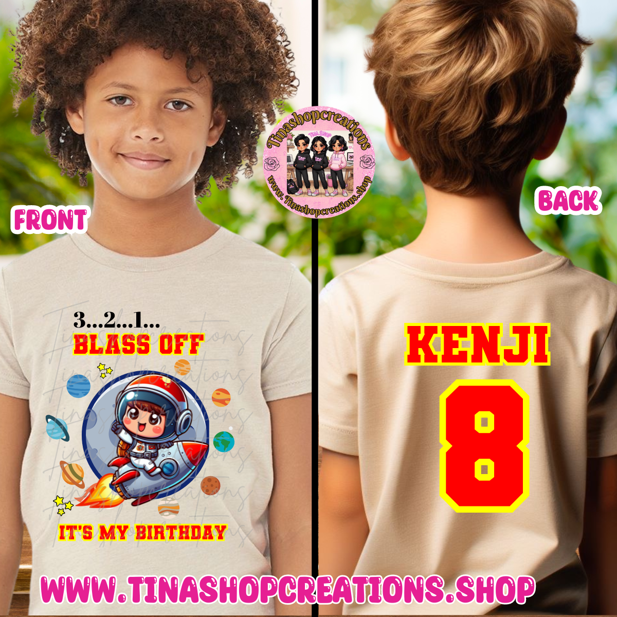 Welcome to Tinashopcreations! We hope you will have a wonderful shopping experience and amazing products with us. Celebrate your next astronaut-themed birthday in style with this Custom Birthday Shirt! Whether you're launching into space or hosting a stellar celebration, this shirt is the perfect fit for any astronaut fan. Personalized with your name and age number on the back, this shirt will make you feel like a true space explorer. Available in a variety of sizes and colors, you can coordinate with your family members for the ultimate matching look. 3, 2, 1 blast off into your special day with this out-of-this-world birthday shirt!