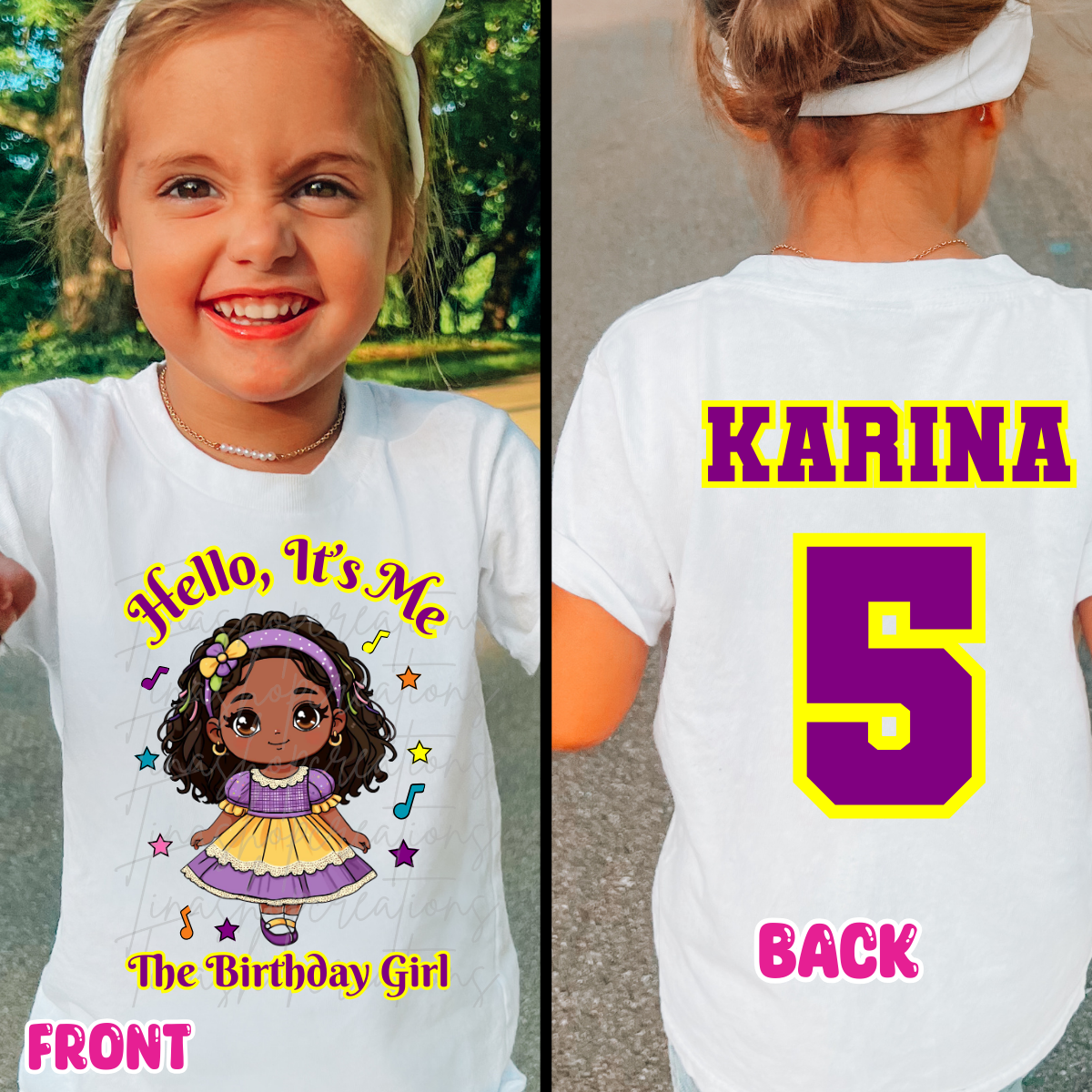 Welcome to Tinashopcreations! We hope you will have a wonderful shopping experience with us. Make your little one's birthday extra special with our beautiful Hello, It's me I'm the birthday girl shirt. This adorable shirt features a cute design on the front and each sleeve, sure to make your little one stand out on their special day. Personalize it with their name and age on the back of the shirt for a truly unique touch. Available in a variety of colors and sizes, this shirt is perfect for your little birthday girl, yourself, or any family member. Order one today and celebrate in style!