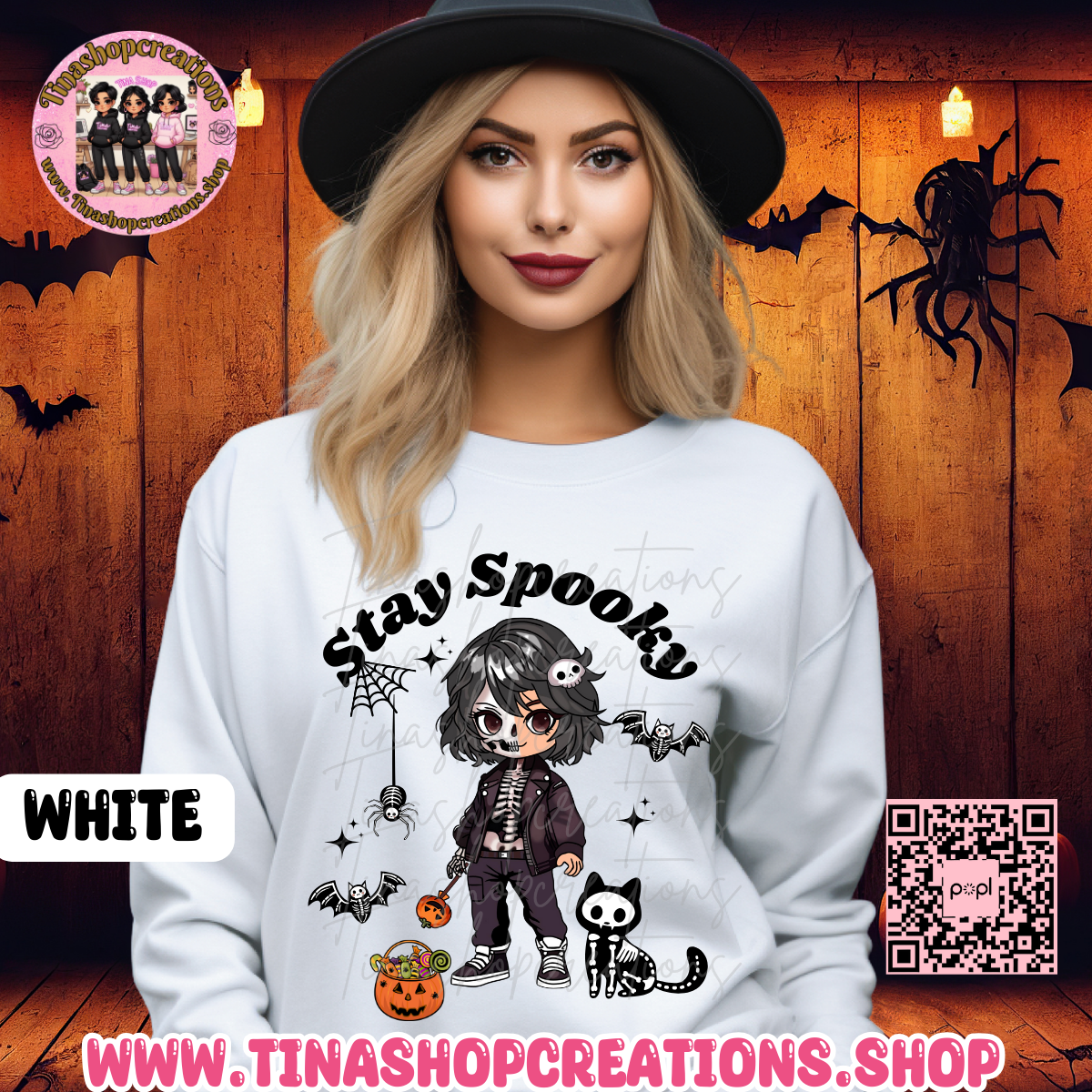 Welcome to Tinashopcreations! We're excited for you to have a fantastic shopping experience with us. Discover our latest 'Stay Spooky' Design, a must-have for any fan of the spooky season! Adorned on the front, back, and sleeves, it's ideal for trick-or-treating, Halloween gatherings, or simply injecting some festive cheer into your Halloween festivities. Offered in an array of colors and sizes, this design promises to awaken the spooky spirit within. Place your order now and stylishly step into the Halloween spirit!